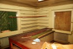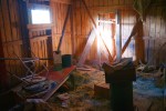 Man brukar skämtsamt säga om en plats som ligger lite avsides till att den ligger i mitten av ingenting alls, eller som det heter på engelska; ”In the middle of nowhere”. Timebandits.se hittade däremot en Konsumbutik som verkligen ligger mitt i ingenstans. Under en fem mil lång transportsträcka i Bergslagen så saktade Timebandits.se in vid en igenspikad eternitvilla för att se vad den gjorde mitt ute i skogen alldeles öde och ensam. Timebandits.se tog några bilder, för eternithus tycker i alla fall Timebandits.se att de är vackra och kulturriktiga. När Timebandits.se återvände till bilen så upptäcktes att det på andra sidan vägen låg en liten övergiven stuga mitt i vägkanten. Huset såg någorlunda helt ut och hade ett litet uthus till vänster. Fönstren var igenspikade men dörren var olåst och endast blockerad av innertaket på takutbyggnaden över ingången som hade rasat ner. Det var inte svårt att lyfta på masoniten och öppna dörren och nyfikenheten var nu stor. Plösligt står vi i en gammal lanthandel, eller vad som var kvar av den vill säga. Här fanns en äkta köpmannadisk, hyllor, kontor och lager, allt i gott skick men tomt på varor.