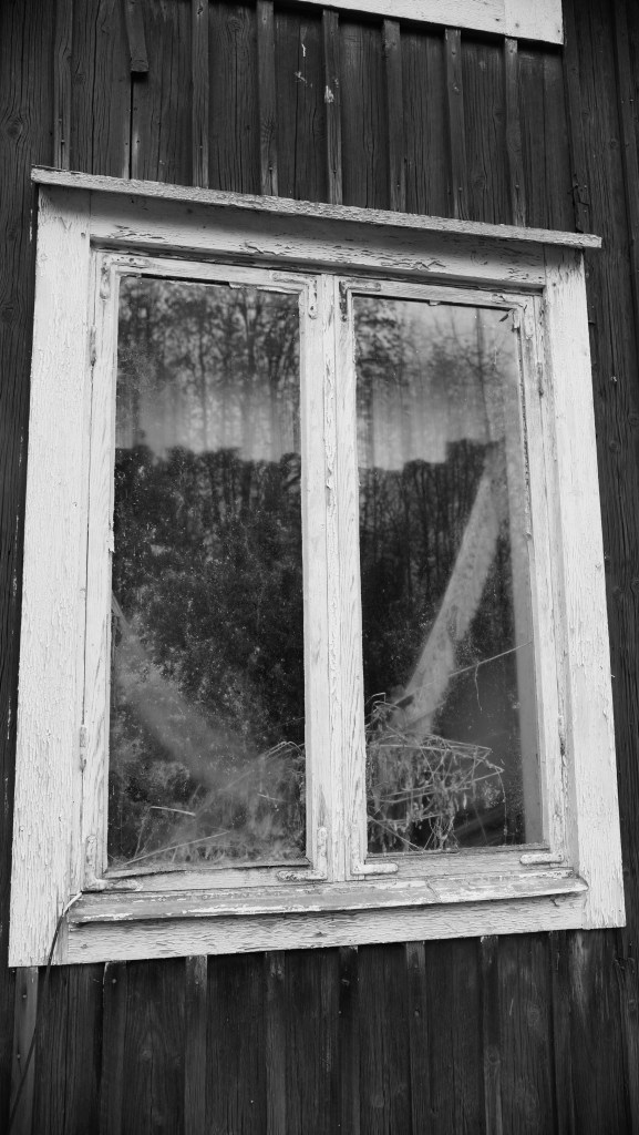 Gemensamt för alla de ödehus vi har besökt är att det gapar tomma kalla fönster mot en när man kommer dit. Vad som skulle vara intressant att veta är vilka som stått och tittat ut genom de här fönstren och vad man har sett? Fönstren var kontakten utåt och det var här man såg vad som hände i omgivningarna. Kanske såg man folk som var på väg hem från jobbet i t.ex. gruvan, man kanske höll koll på de få djur man hade på gården i sitt självhushåll och naturligtvis även vädret. Det finns väl få folkslag i världen som pratar så mycket om vädret som svenskarna och det hänger troligen kvar från tiden då vädret var mer avgörande för ens försörjning än idag. Följande fotoalbum visar ännu en liten gård som gått i stå och som sakta faller både i glömska och ihop.